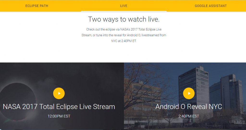 Android O is touching down to Earth with the total solar eclipse, bringing some super (sweet) new powers! On August 21st, a solar eclipse will sweep across the entire United States for the first time since 1918. Android is helping you experience this historic natural phenomenon so you can learn more about the eclipse and count down to the big day—when you’ll meet the next release of Android and all of its super (sweet) new powers, revealed via livestream from New York City at 2:40PM ET. Corvallis, OR, United States will experience a total eclipse. Two ways to watch live: Check out the eclipse via NASA’s 2017 Total Eclipse Live Stream, or tune into the reveal for Android O, livestreamed from NYC at 2:40PM ET. Four your General Knowledge: How many eclipses happen per year? According to EarthSky.org, bottom line: any calendar year has a minimum of four eclipses—two solar and two lunar. Most years have only four eclipses but depending on the year, it’s possible to have five eclipses, six eclipses, or as many as seven eclipses in one year’s time.