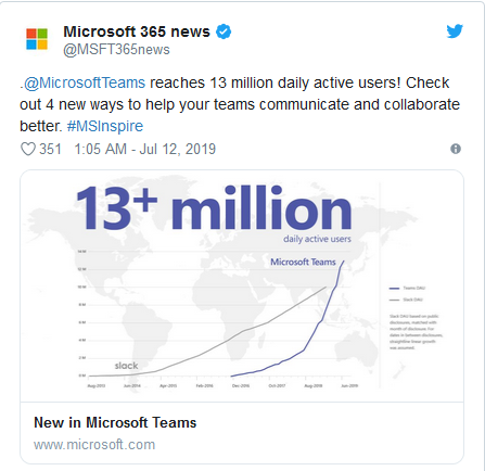 Unfortunately, the phone overtook Slack according to Microsoft information, not two years after it revealed its Slack rival called Microsoft Teams. There are about 13 million users per day on Microsoft teams, while 500,000 companies use it weekly for 19 million people.